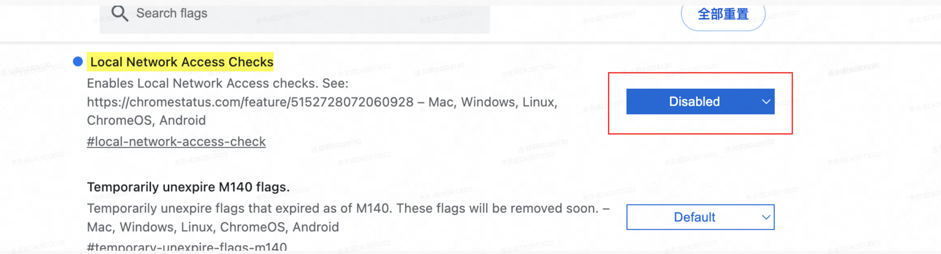 c. 在浏览器地址栏输入:chrome://flags/#local-network-access-check