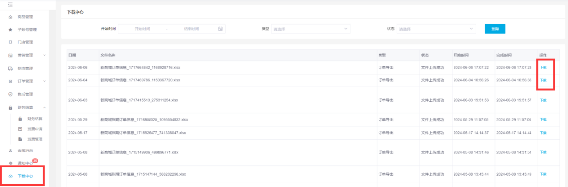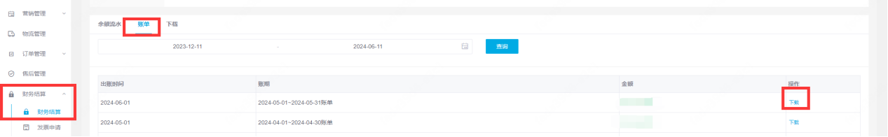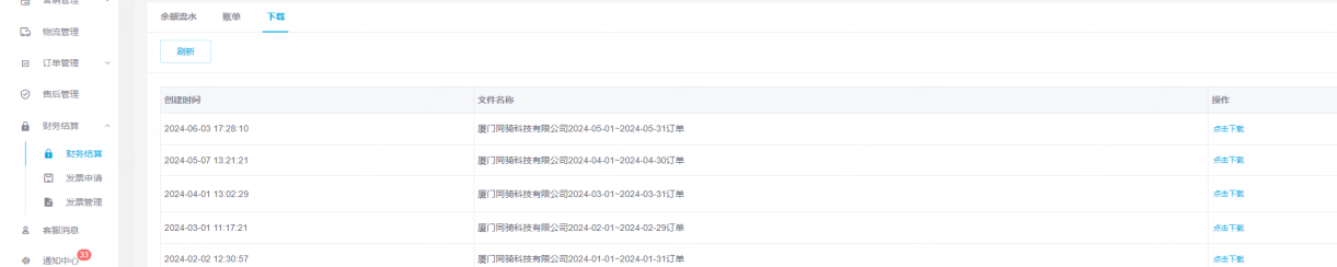 操作路径:财务结算-下载-在“下载中心”中查看相关下载文件。