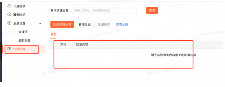 ⑥快捷回复(可根据常见回复问题设置快捷回复语,便于后期回复客户问题)