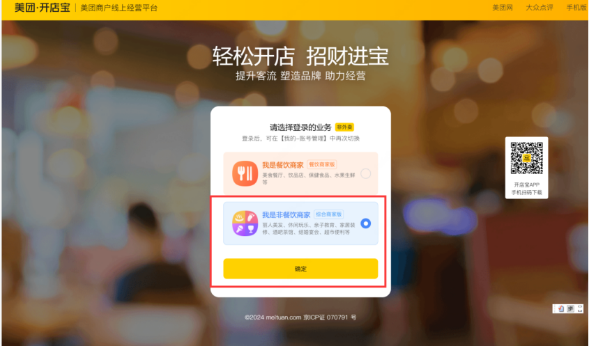 ①操作路径:商家可点击”客服消息“进入开店宝页面,选择“我是非餐饮商家”,登陆账号处理客服信息。(必开!!!)