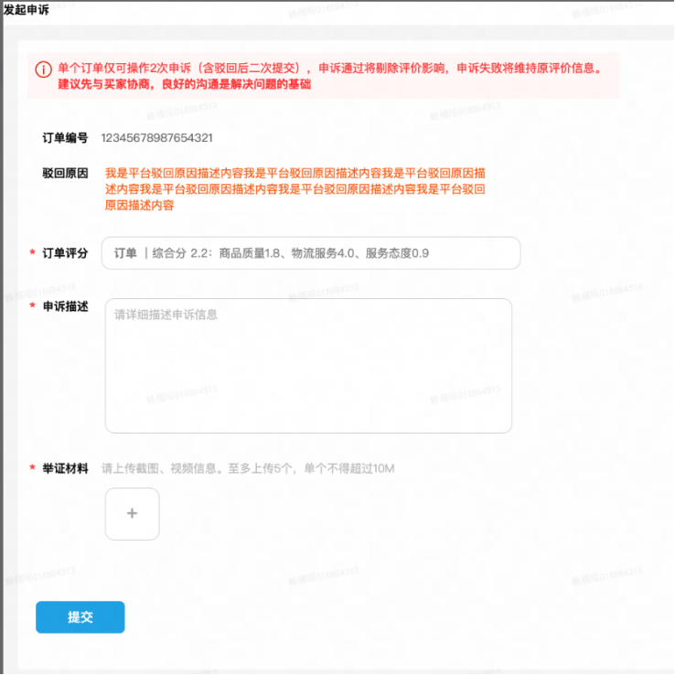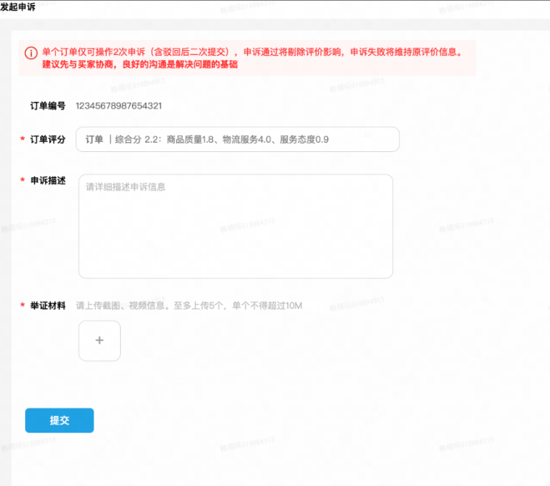 ③每笔订单有2次申诉的机会(1次正常申诉机会+1次驳回后重新申诉的机会)