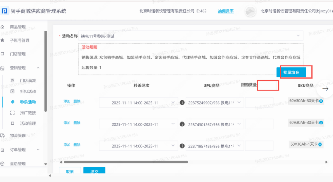 注:提交报名秒杀活动需提前在城市经理处报名对应秒杀活动(提供参加活动的商品及价格等),后台才会审核通过,未报名的一律驳回处理