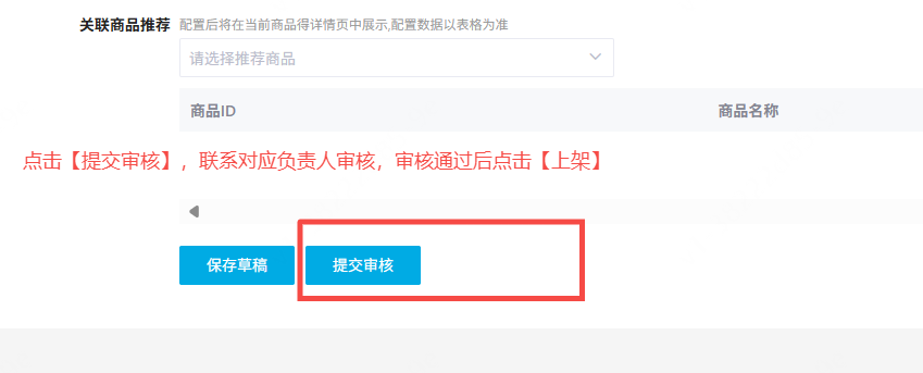 2)线下商品列表-关联商品是已下架状态,需要对每个关联商品进行编辑,确认价格等信息无误后提交审核,审核通过后点击上架;